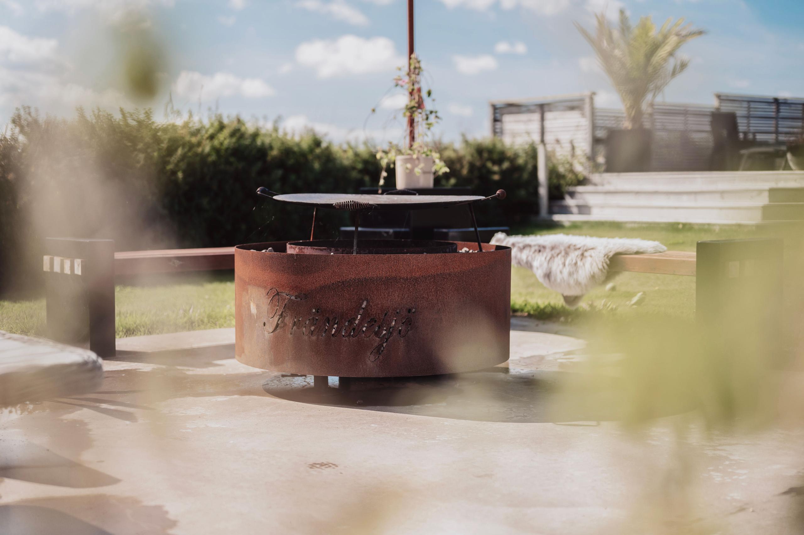 Vår eldstad i hållbart cortenstål skapar både värme och stämning i trädgården. Den tidlösa designen passar lika bra på altanen som vid uteplatsen – och patineras vackert med tiden.